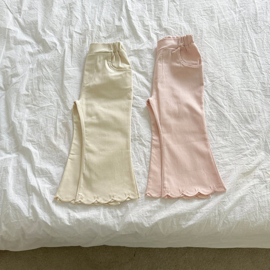 Pompom frill bootcut pants [Ivory S]