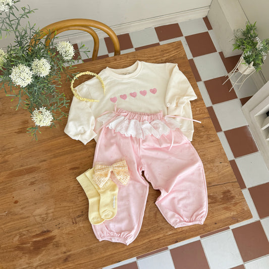 Sold outLace ribbon jogger pants [Ivory S]