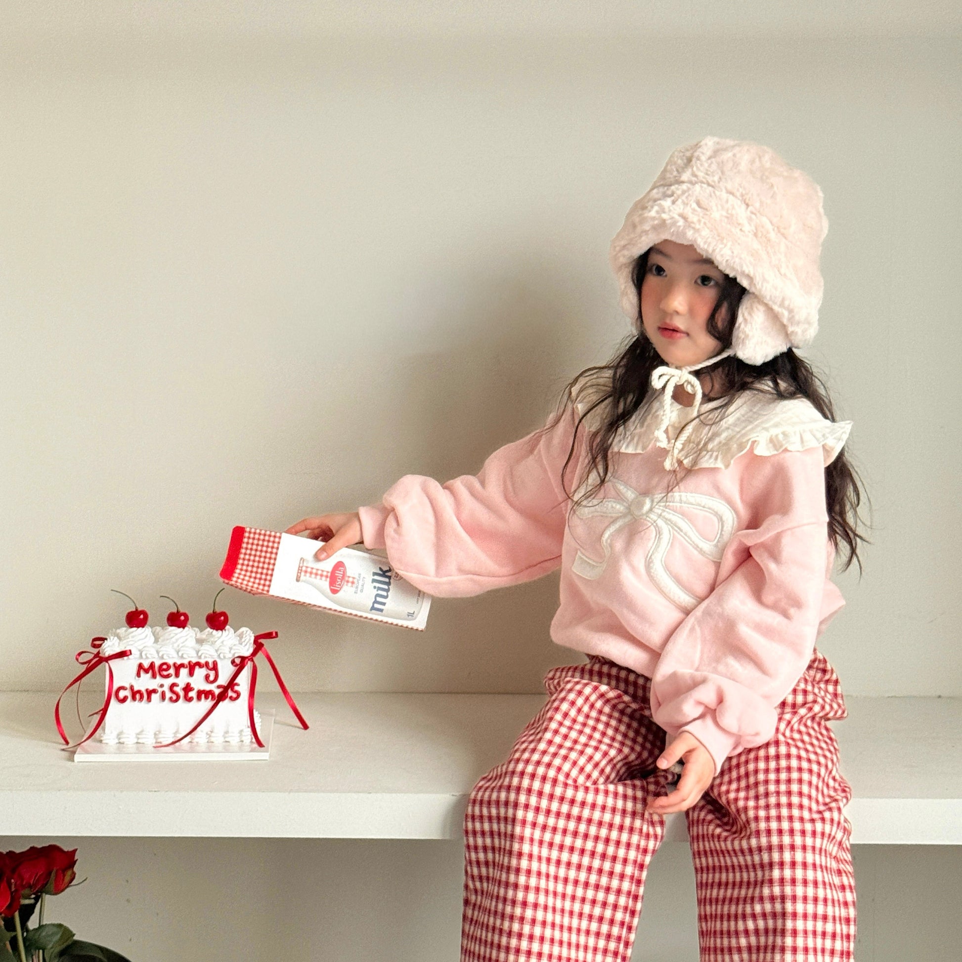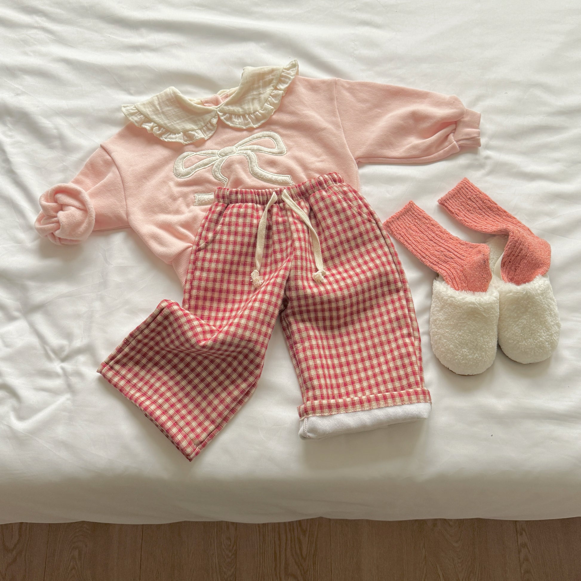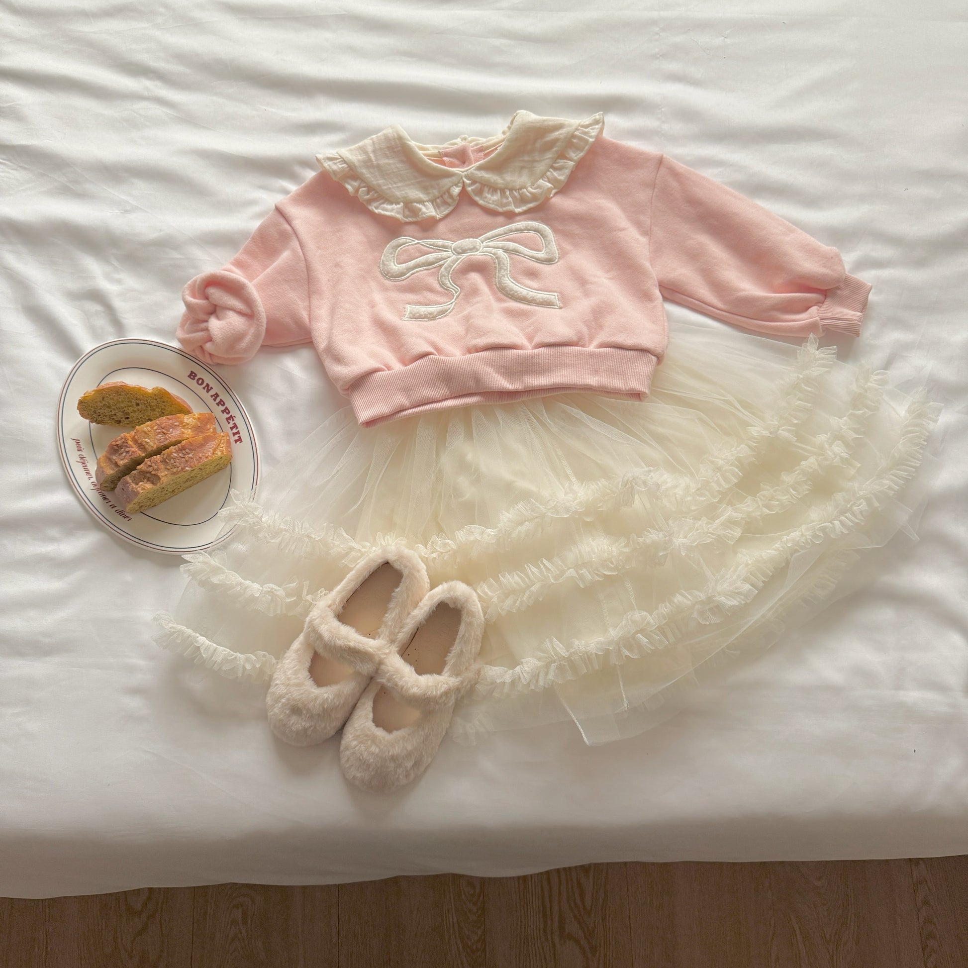 Adorable ribbon-collar sweatshirt that adds a charming twist to any outfit.