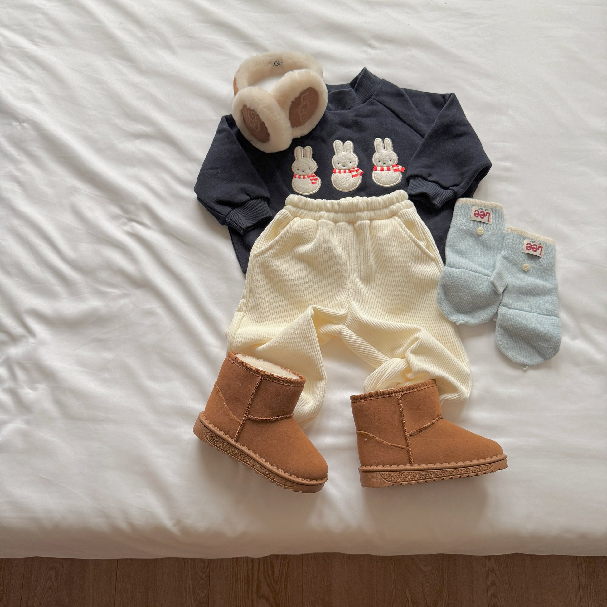 Playful sweatshirt with rabbit snowman print.